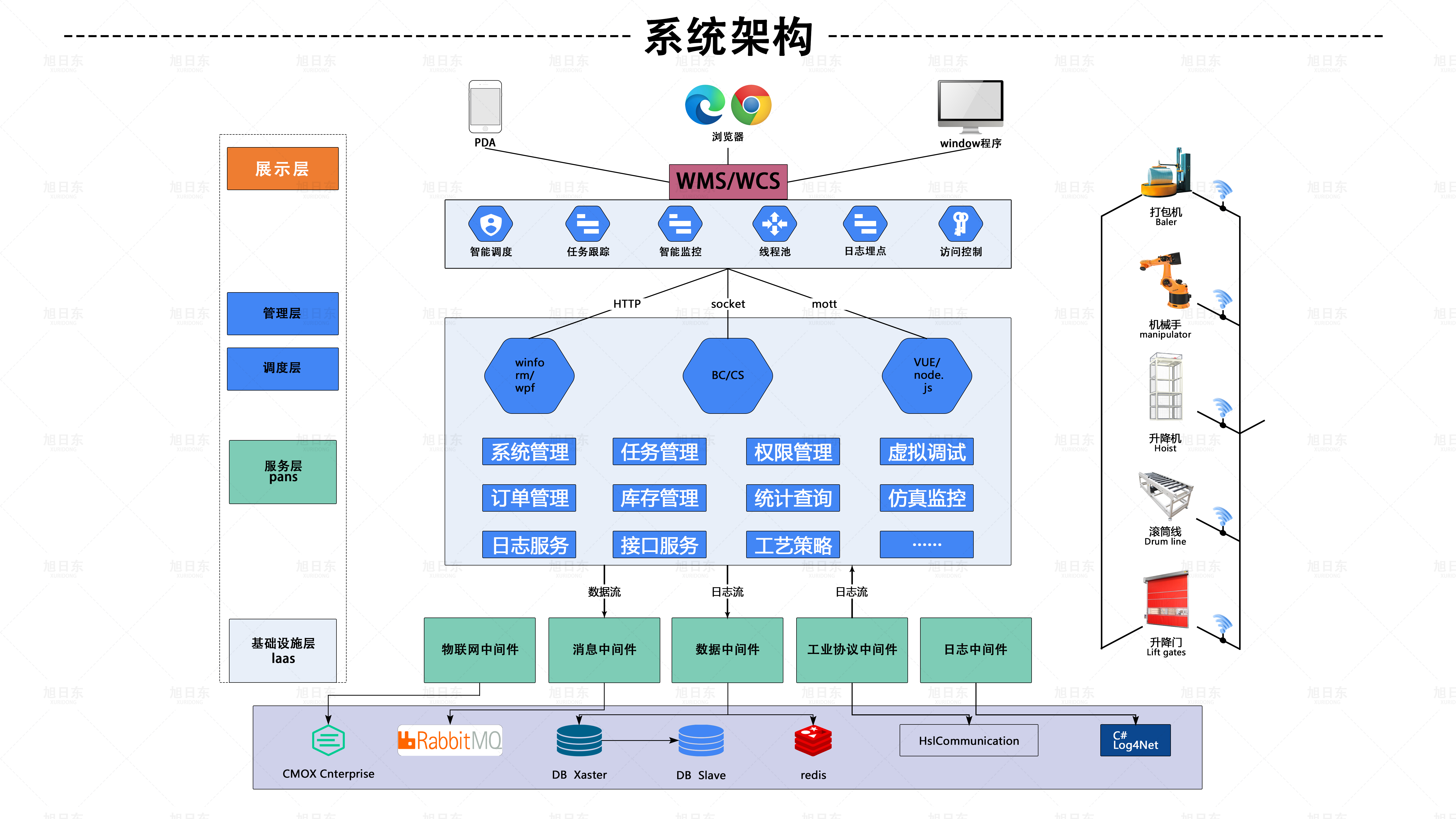 WCS:人機監控,提供設備最優路徑規劃,防碰撞,高效率。